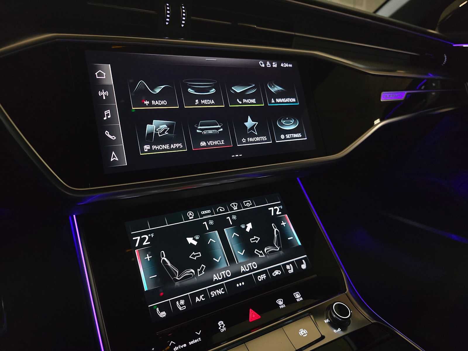 - Radio: MMI Navigation Plus w/MMI Touch Response -inc: 10.1" upper and 8.6" lower screens, Audi connect CARE, PRIME and PLUS (limited time subscription), Audi music interface w/front and rear USB ports (data and charge), Audi phone box w/wireless charging and signal booster, Audi smartphone interface (wired Android Auto and wireless Apple CarPlay) and SiriusXM All Access service (w/3-month trial subscription)